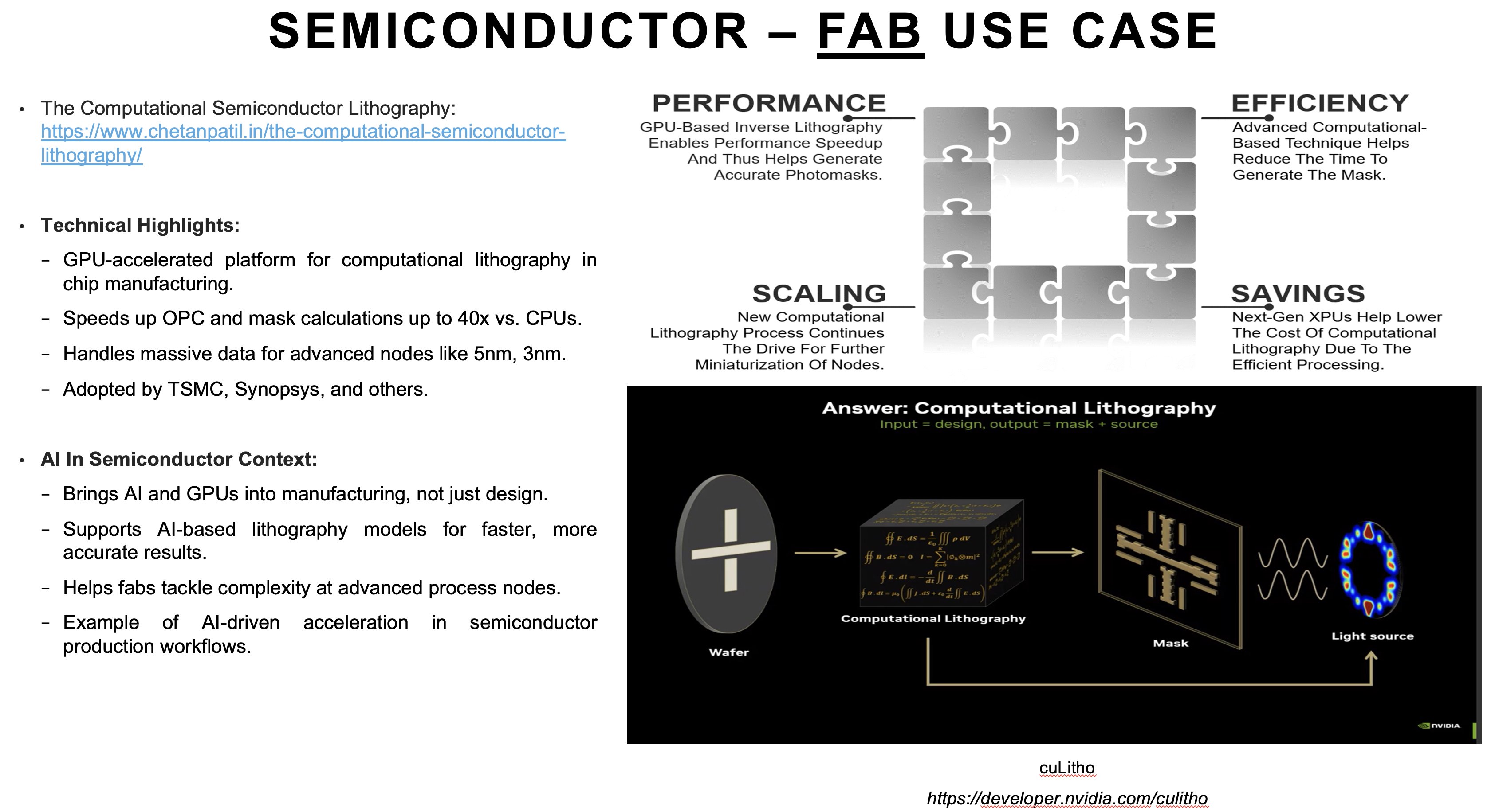 Manufacturing (FAB)– Computational lithography (e.g. cuLitho)